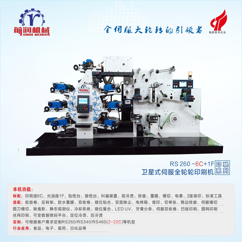 | 1.Compared with common label printing machines, RS260-6C+1F can reach a high speed of 100M/min andl with more precise positioning and more accurate color printing. Advanced ink distribution ensures more even coloring. |