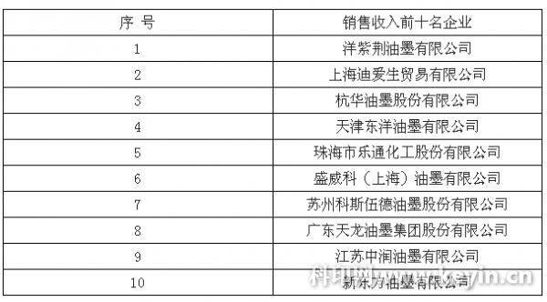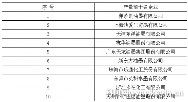 據中國油墨行業協會統計, 2015 年我國油墨總產量為 70 萬噸,其中年產量萬噸以上的十幾家,前十大企業的產量總和為 28.16 萬噸,占比 40.23%。全國2015 年主營業務收入 2000 萬及以上的油墨企業共 340 家,處于完全市場競爭狀態。